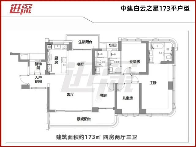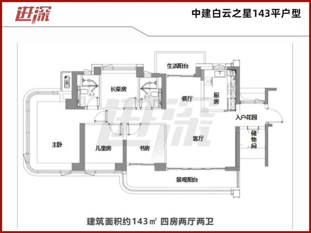 具体来看,128平户型有入户花园,主卧有270°飘窗;143、173平户型有入户花园,储物间,双阳台,主卧270°飘窗。